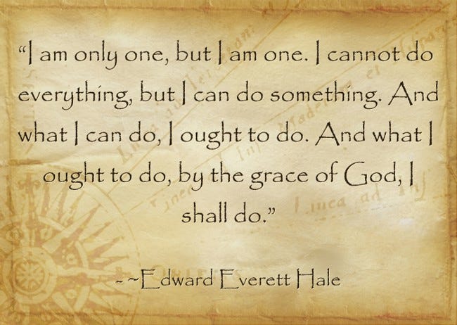 My dear friend Molly sent me this wonderful quote, which challenges me (and all of us) to do SOMETHING to repair the brokenness all around us. This Holy Week, by God’s grace, I will accept the challenge. Bless you, friends, and bless our world.