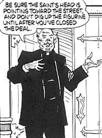 Oh, while I’m about it, some of my girls in the Holy Mother’s Club wanted me to burst a few more bubbles. Saint Valentine’s ma says he never brings anyone flowers, and chocolate makes his skin break out. Saint Nicholas’s ma reports that Nicholas is a really selfish bugger, wouldn’t give you a present if you were the Lord God almighty. Saint Anthony’s ma wants you to know that he can’t find your stuff; in fact he can’t find his own way out of a paper bag. And finally, from Saint Francis’s ma: Frank cannot talk to the animals; he is not flippin’ Doctor Doolittle!